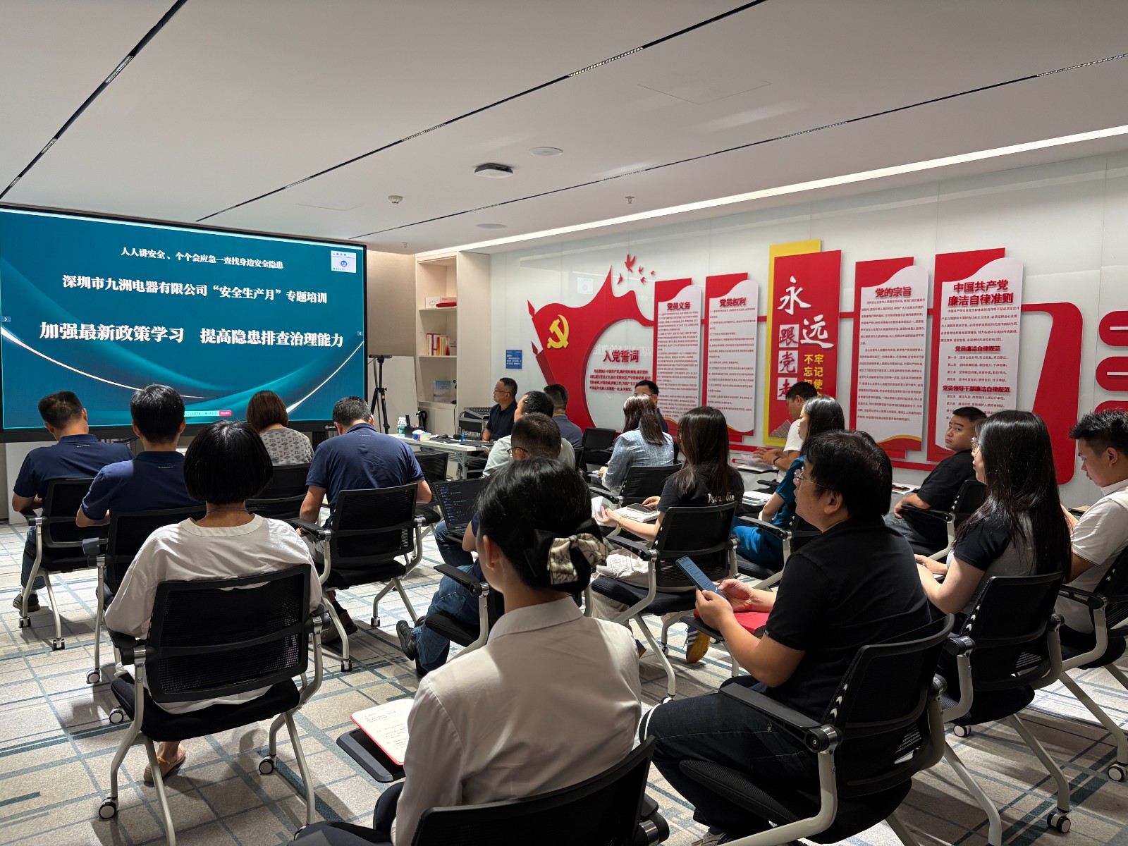 2025年6月,正值我國第24個全國 “安全生產(chǎn)月”,深圳九洲電器積極響應(yīng)國務(wù)院、省、市及九洲集團安委會的安排部署,以 “人人講安全、個個會應(yīng)急 —— 查找身邊安全隱患” 為主題,深入開展了一系列形式多樣、內(nèi)容豐富的安全生產(chǎn)活動,全力營造安全氛圍,提升全員安全意識與應(yīng)急能力。
