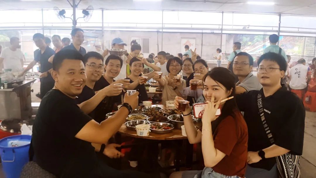 上午十點,深九家人們來到深圳鳳凰山的團建基地,大家開始擼起袖子一起加油干,忙得不亦樂乎,有條不紊地領(lǐng)食材、生火、洗菜、掌勺、包粽子……不一會兒,炊煙裊裊、香味四溢,一道道美味佳肴紛紛呈上餐桌。