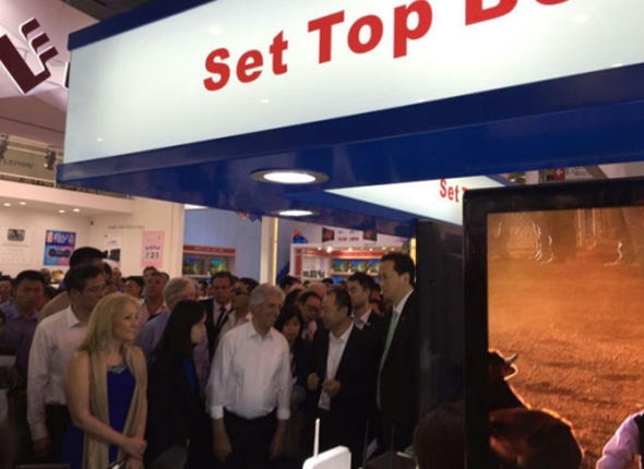 10月17日,展會第三天,烏拉圭總統(tǒng)塔瓦雷·巴斯克斯蒞臨九洲展位。集團公司副總經(jīng)理霞暉介紹了九洲的整體業(yè)務情況。