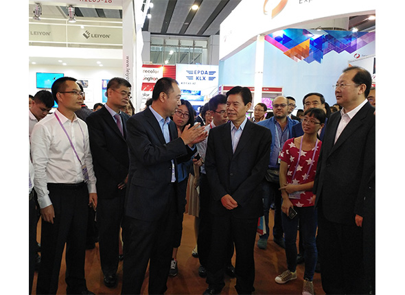 10月17日,四川省商務廳廳長劉欣一行到訪九洲展位,詳細了解九洲的參展情況