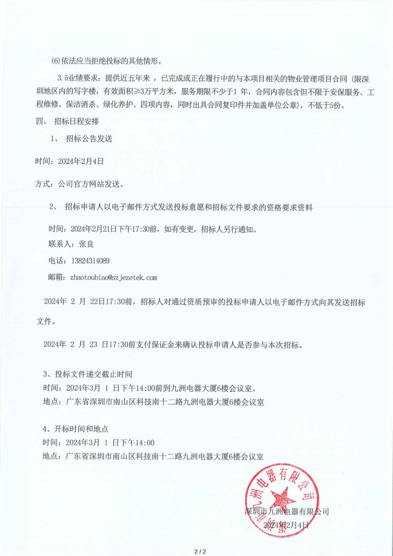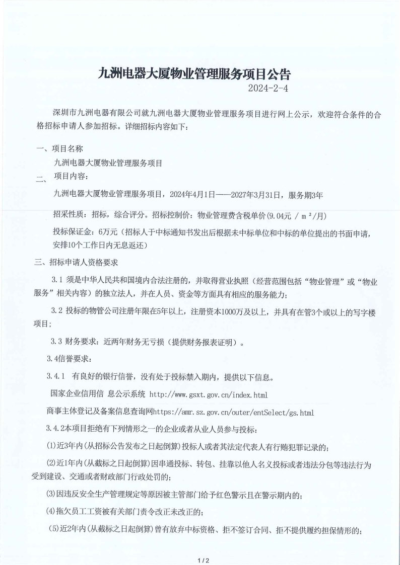 九洲電器大廈物業(yè)管理服務(wù)項(xiàng)目公告