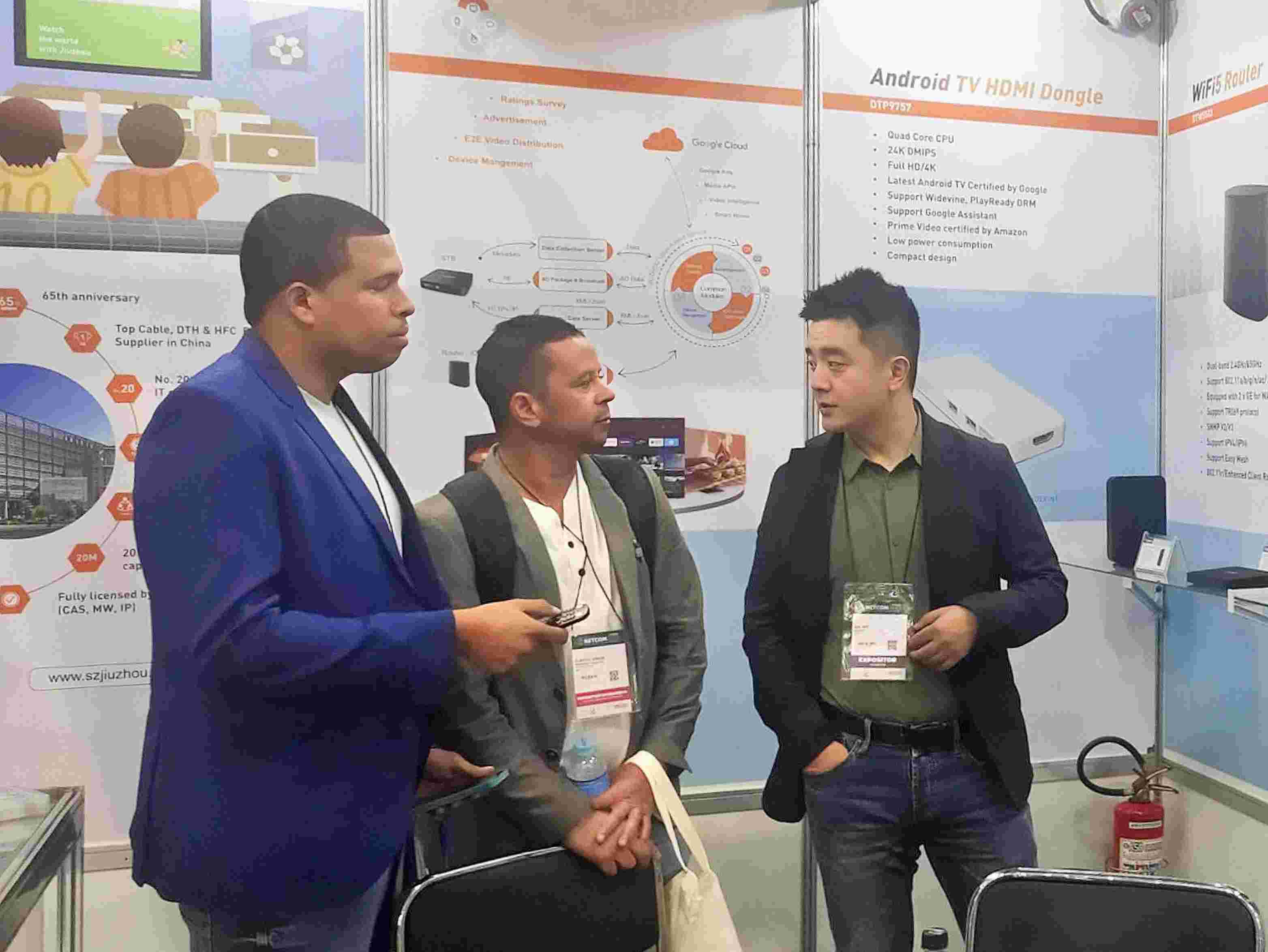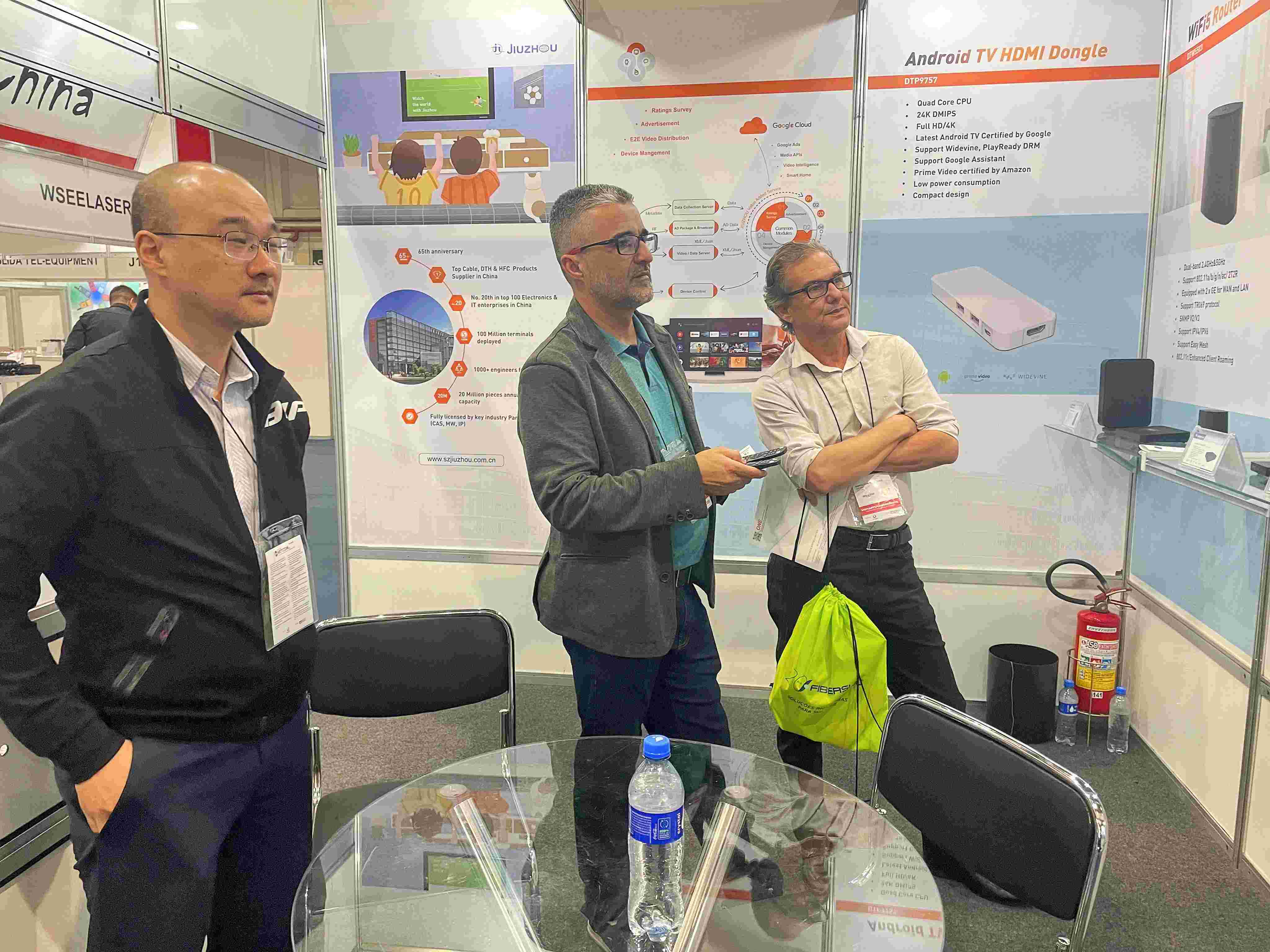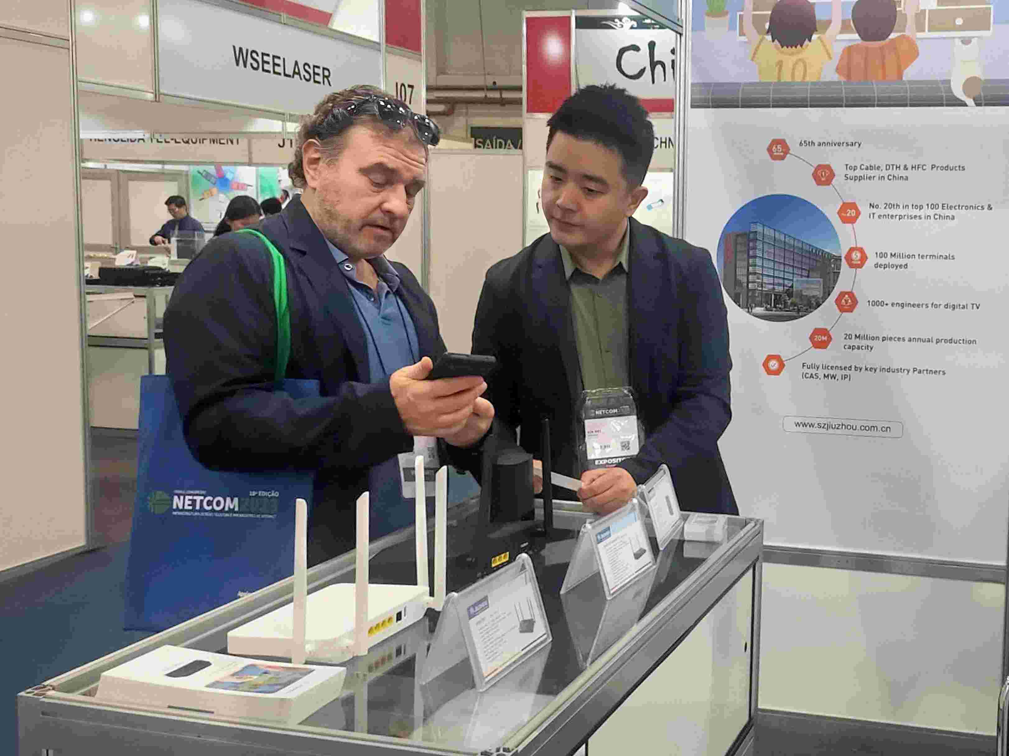 繼6月參加新加坡亞洲科技展后,深圳九洲電器數(shù)字電視團(tuán)隊(duì)又馬不停蹄地遠(yuǎn)赴巴西,參加NETCOM 2023。本次展會(huì),深圳九洲電器展臺(tái)集中展出5G CPE,Wi-Fi 6路由器,GPON&OTT和家庭網(wǎng)關(guān)等多款智能終端產(chǎn)品及整體解決方案,吸引了諸多關(guān)注。