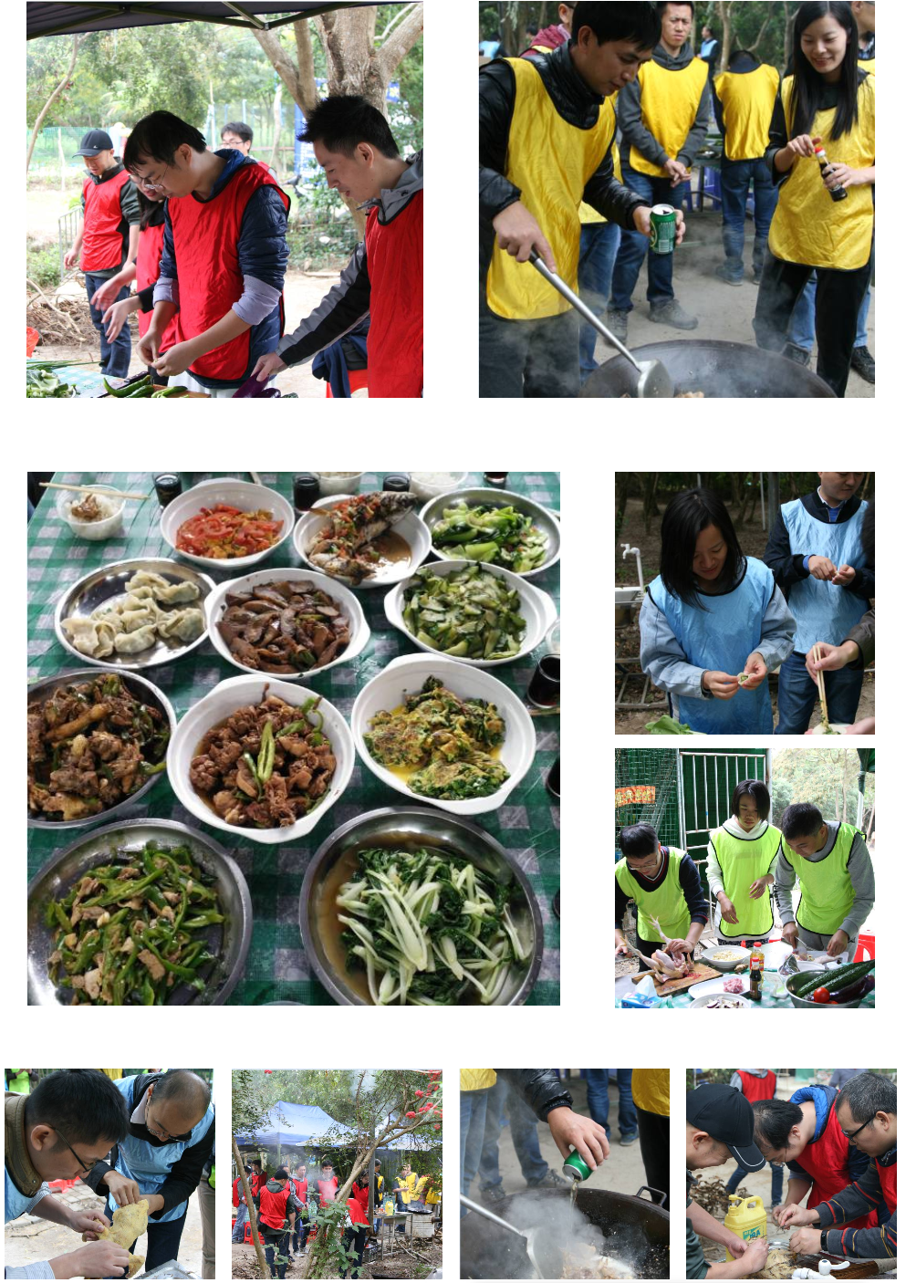 上午交流會結(jié)束的比較晚,相信大家已經(jīng)饑腸轆轆了,自助中餐野炊考驗大家的動手能力和默契的能力。團隊被分為紅黃藍綠四組,每組自行領(lǐng)取食材,自制美味午餐!女洗菜來,男抓雞,一起動手生火,做飯等,俗語云:男女搭配干活不累 ! 一頓香噴噴的飯菜就在輕松愜意的氛圍里上桌。