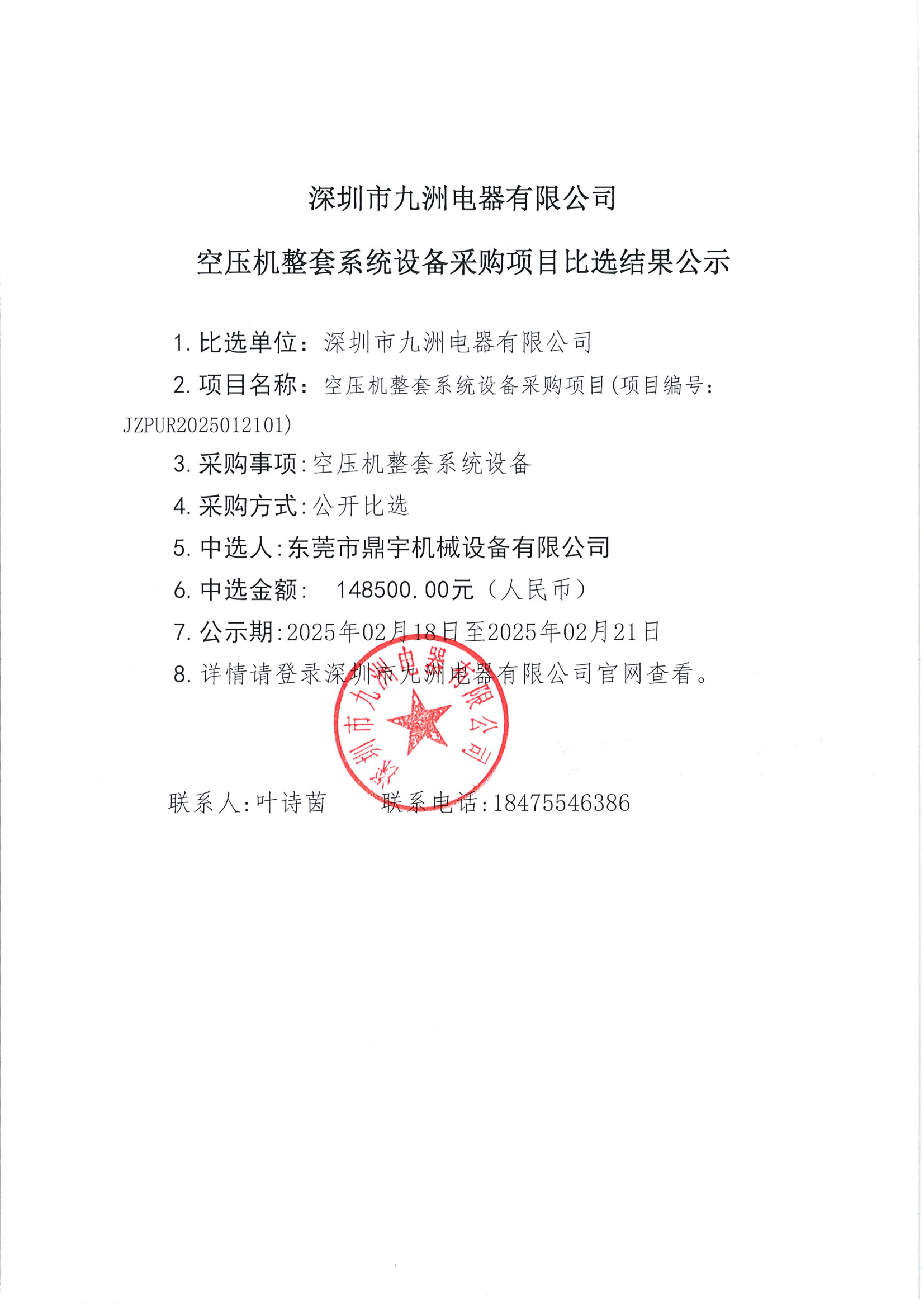 空壓機(jī)整套系統(tǒng)設(shè)備采購(gòu)項(xiàng)目比選結(jié)果公示