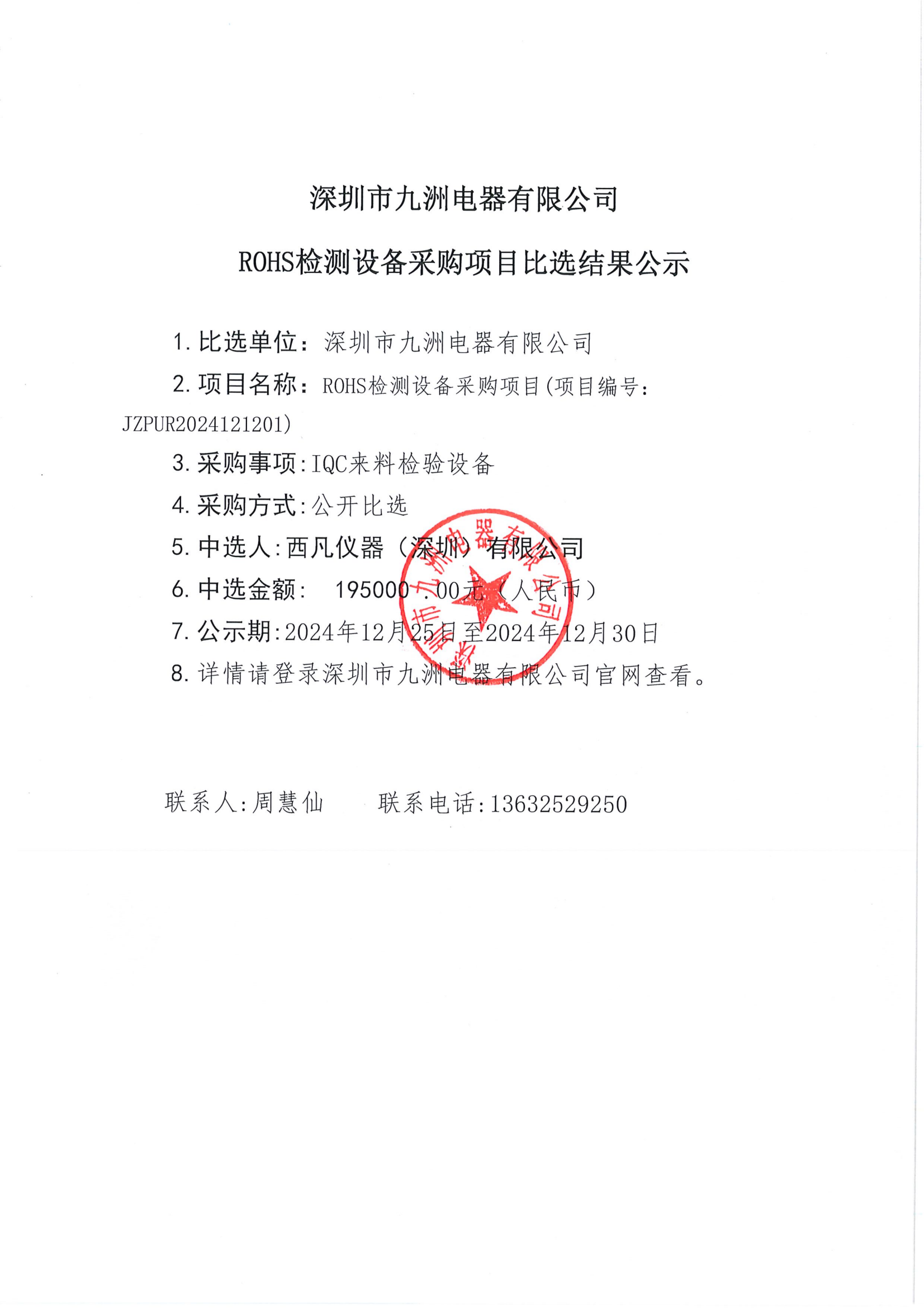 ROHS檢測設(shè)備采購比選結(jié)果公示