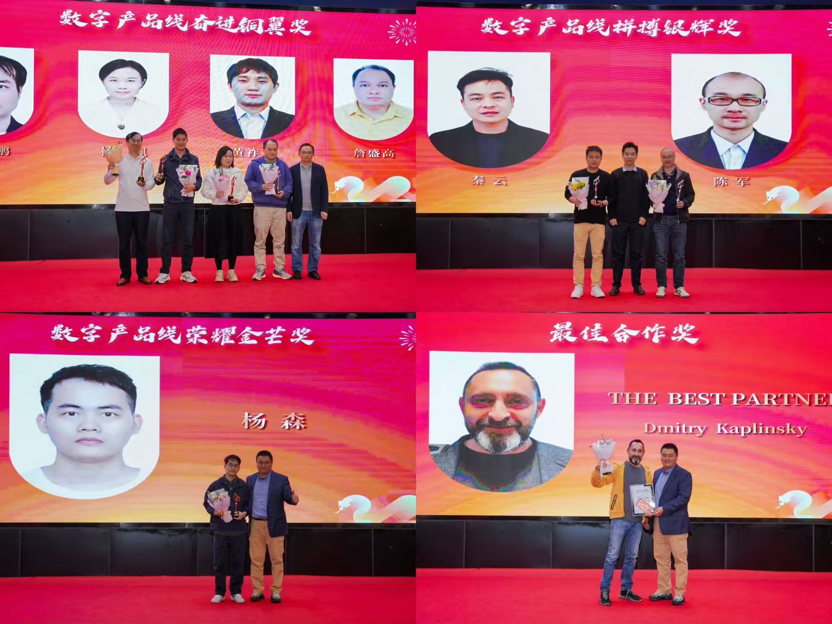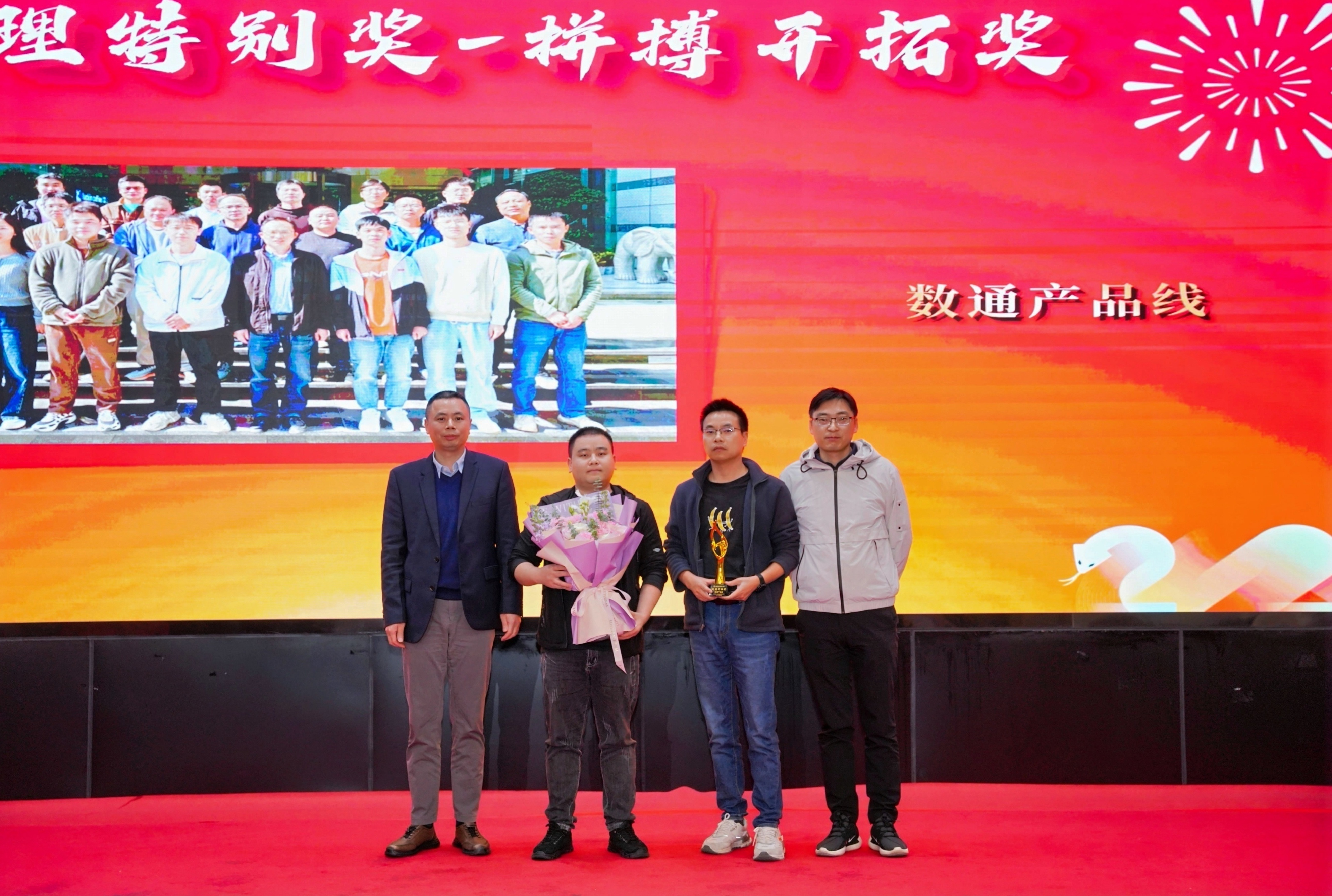在本年度的總經(jīng)理特別獎(jiǎng)中,韓總為數(shù)通產(chǎn)品線頒發(fā)了拼搏開拓獎(jiǎng),對數(shù)通產(chǎn)品線從0到1的突破表示肯定,并激勵(lì)團(tuán)隊(duì)為數(shù)通業(yè)務(wù)發(fā)展繼續(xù)奮勇前進(jìn),堅(jiān)定了公司對數(shù)通業(yè)務(wù)的發(fā)展信心。