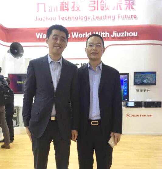 深圳市九洲電器有限公司總經理李紅滿(右)與視若飛CEO王曄(左)在CCBN2016的合影
