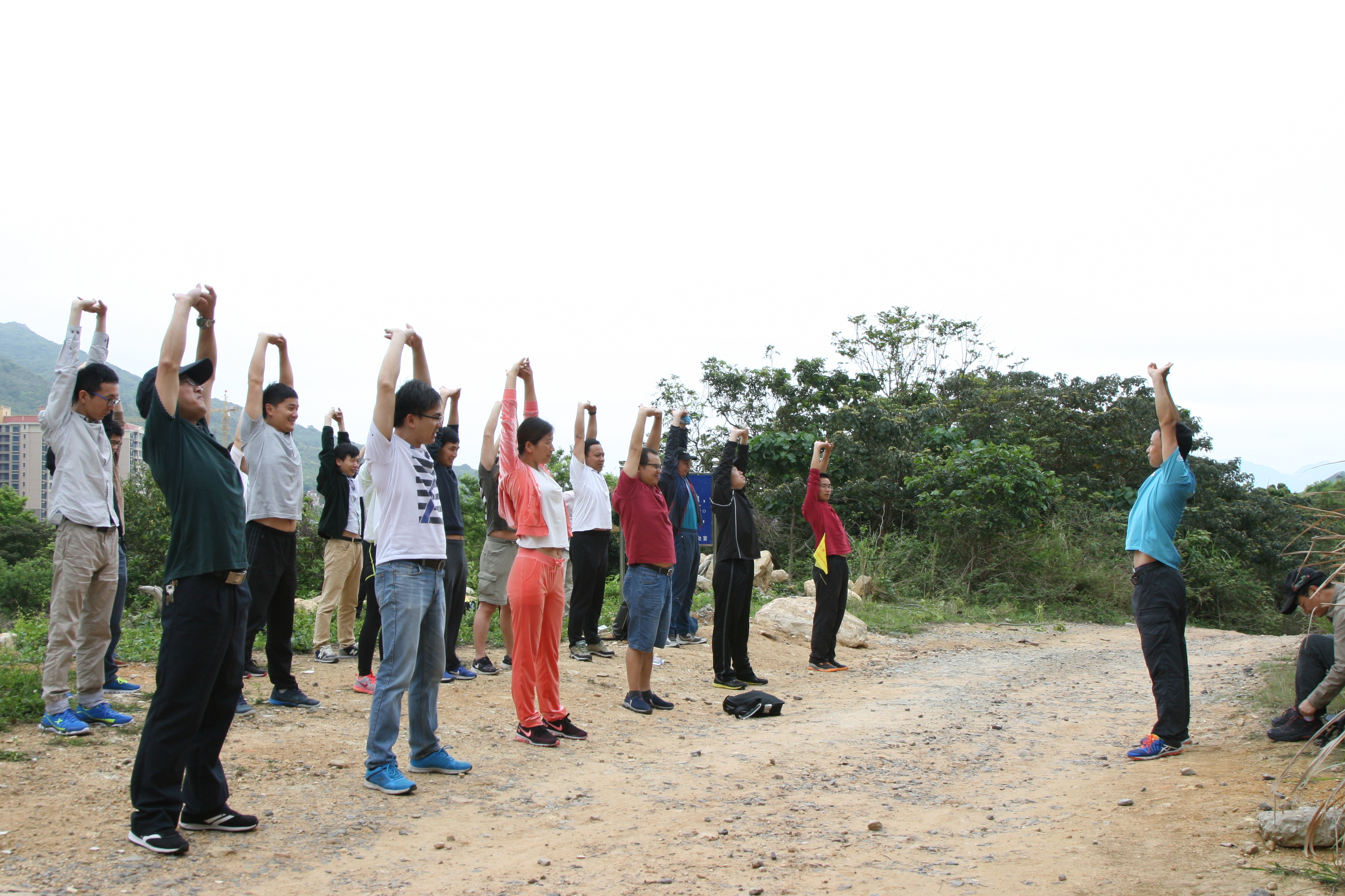領隊帶領大家做穿越前的熱身運動,交代注意事項
