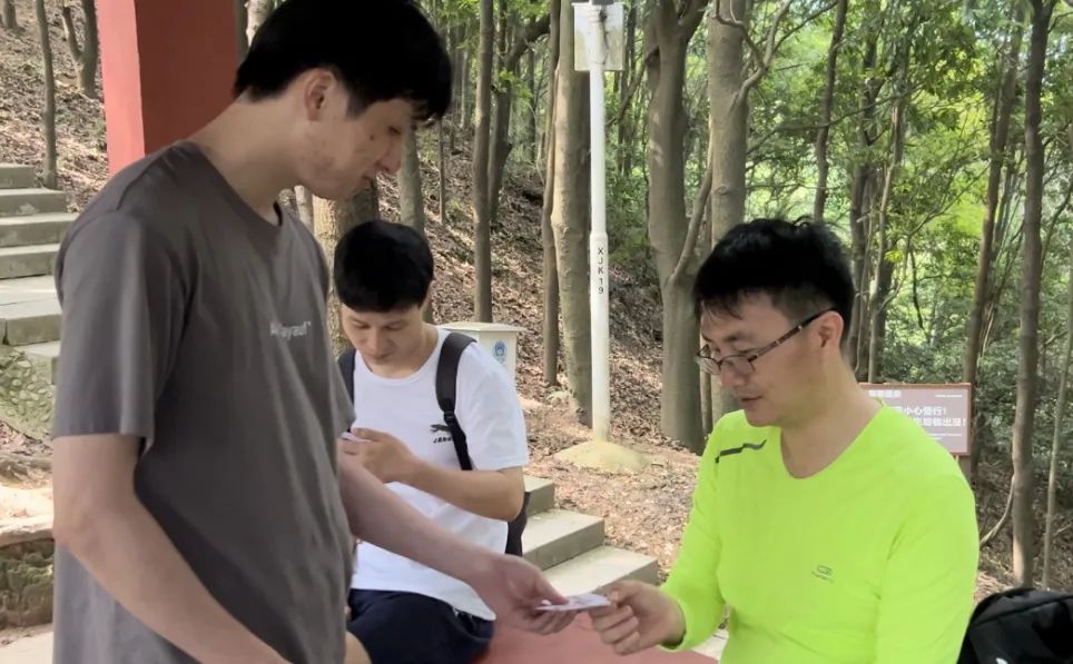 當(dāng)日上午,全員集合完畢,大家伴著明媚的陽光,互相扶持,互相幫助,邊走邊感受綠色生態(tài)氣息,贊嘆革命先輩奮斗的不易,途徑風(fēng)門坳、大陽臺(tái)山頂、秋菊亭,歷時(shí)7小時(shí),最終到達(dá)“勝利大營(yíng)救”主題紀(jì)念碑前。