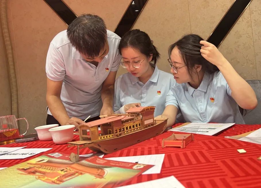 下午,黨員們開始了“重返1921”紅色劇本研讀活動,旨在注入黨史學習年輕態(tài),解鎖主題黨日新模式,主要分為“星星之火-前往上?!薄ⅰ捌咴铝骰?望志路106號”、“八月驕陽-嘉興南湖紅船”等內容,通過觸發(fā)任務、全員解密、紅船制作、劇本演繹等沉浸式體驗,帶領黨員們穿越歷史時空,走進崢嶸歲月,感悟黨史,感悟紅色文化,致敬革命先輩,汲取奮進力量。