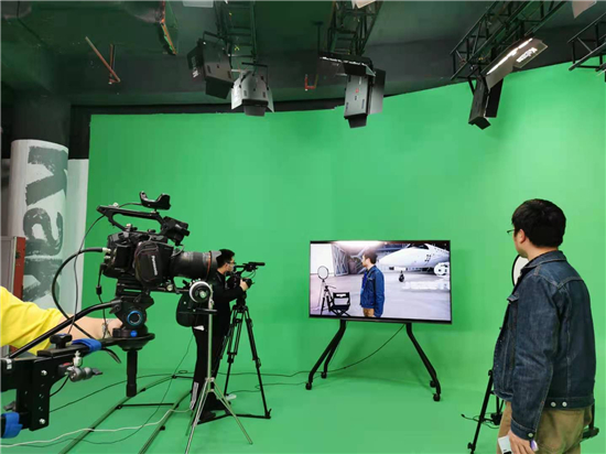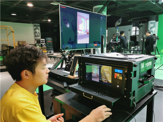 位于九洲5G數(shù)智產(chǎn)業(yè)生態(tài)基地里的沉浸式數(shù)字直播間(記者 李曉蓉?cái)z)
