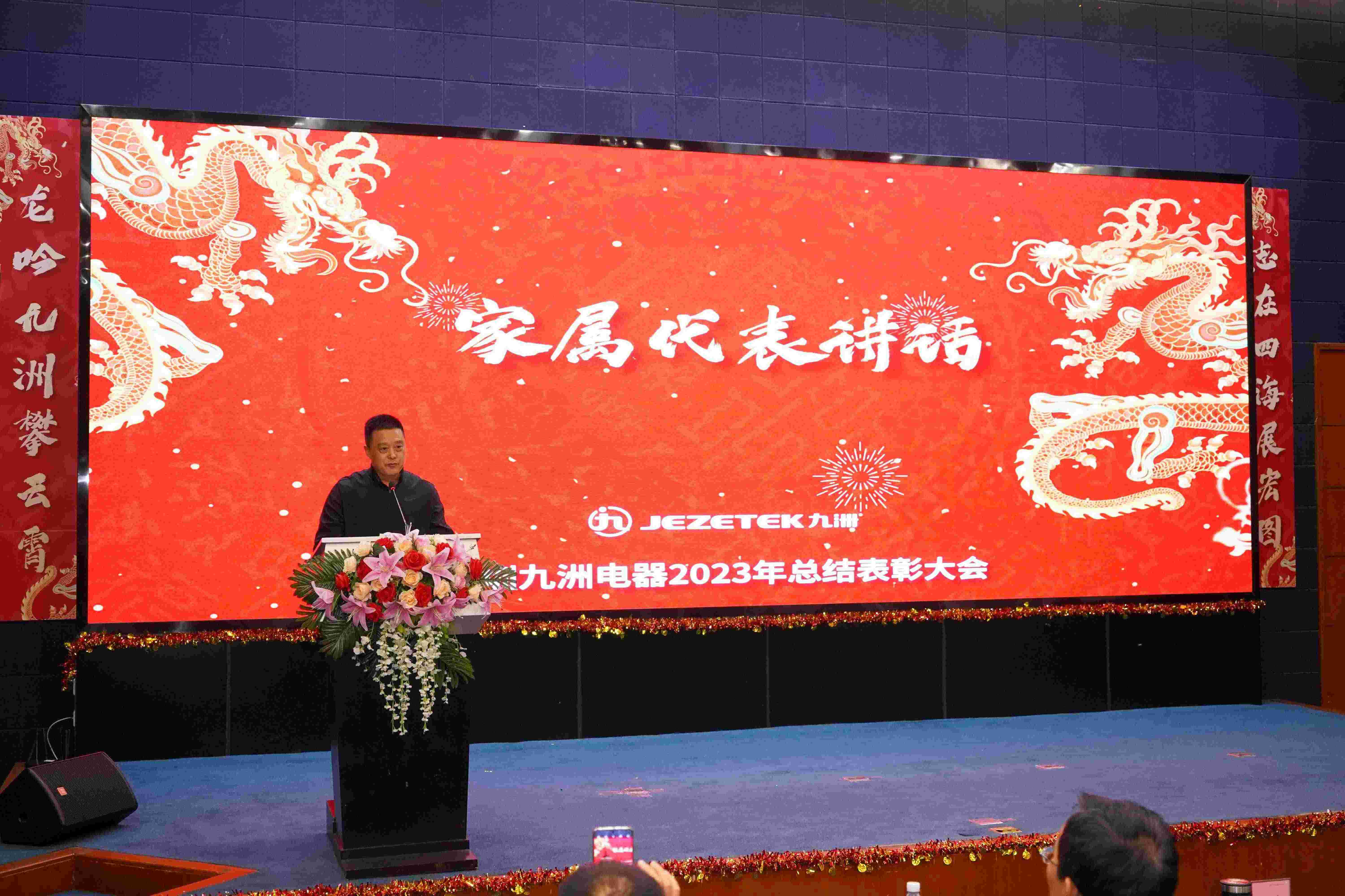 成績的取得離不開廣大員工的辛勤付出和集體智慧,更離不開九洲家屬們的默默奉獻(xiàn),家企攜手同心,共筑美好未來,公司數(shù)字產(chǎn)品線副總經(jīng)理辛巍的父親作為家屬代表發(fā)言。他對公司給予辛巍發(fā)展平臺(tái)和機(jī)會(huì)表示感謝,對公司取得的驕人成績而自豪,表示將一如既往地支持工作,相信公司在領(lǐng)導(dǎo)的帶領(lǐng)下,在大家的共同努力下,將會(huì)取得更大的成績。